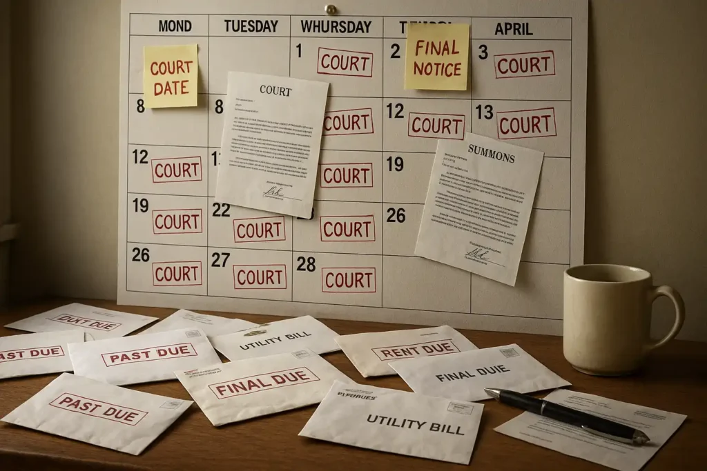 Friends change. Bosses question trust. Stress piles up with every notice and hearing.